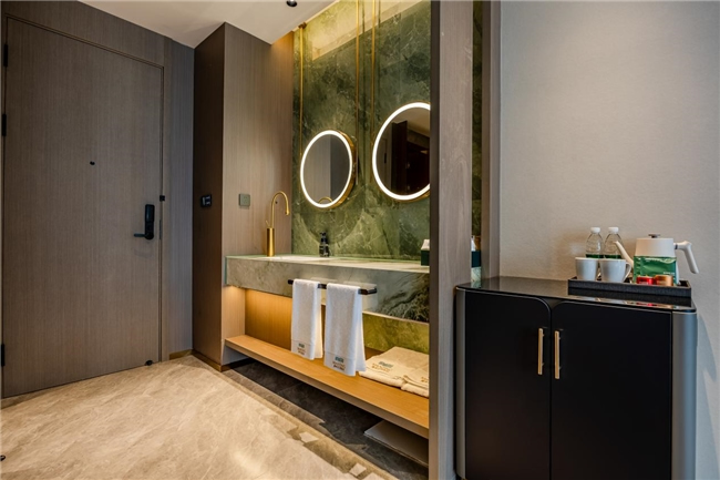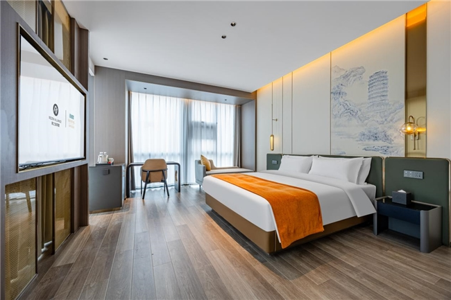 客房方面,酒店設有多元客房,涵蓋大床房、雙床房、家庭房及豪華套房,滿足不同客人的入住需求。房間內配備全景落地窗、智能客控系統(tǒng)、電視投屏功能、品牌床墊、中央空調等設施一應俱全,營造出舒適溫和的氛圍,讓客人在淡泊素雅的藝術氣息中,感受到 "酒店不只是一張床,更是路上最溫暖的港灣,是在繁華喧鬧中回歸自我的慢生活"。