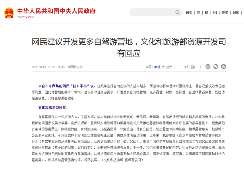 下一步,我們將借鑒建議的內(nèi)容,引導各地結(jié)合城市公園、濕地等地方資源特色因地制宜建設(shè)自駕游營地,從供給側(cè)順應(yīng)市場需要和人民群眾需求,滿足近郊游、度假游、公園游等不同距離和時長的露營需求,積極推動露營旅游快速、規(guī)范發(fā)展。
