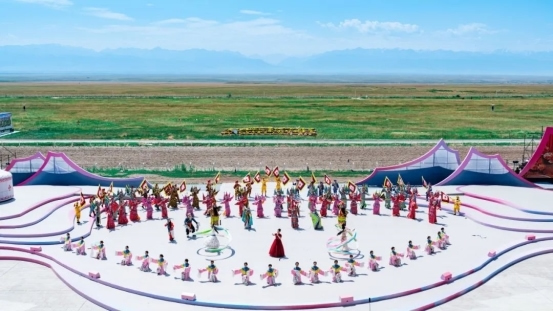 2025’新疆伊犁天馬文化旅游節(jié)開幕式舞臺(tái)以巍峨的天山和遼闊的草原為背景,文藝演出由“蹄印千年·絲路新顏”、“蹄印千年·絲路新韻”、“蹄印千年·絲路新潮”三大篇章及尾篇組成。開幕式文藝演出在開場(chǎng)歌舞《團(tuán)結(jié)一心襄盛會(huì)》中拉開序幕,展現(xiàn)了各族群眾團(tuán)結(jié)奮進(jìn)、銳意進(jìn)取的精神風(fēng)貌。