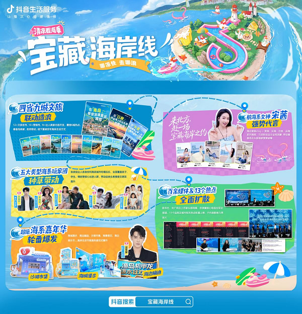 當(dāng)海浪與城市共鳴,當(dāng)流量與體驗共振,抖音生活服務(wù)聯(lián)合四省九城打造了一場「寶藏海岸線」文旅盛宴,交出了一份令人矚目的答卷。從政府到商家,從明星到達人,從線上種草到線下狂歡,這場以“海”為核的超級IP,不僅激活了海岸經(jīng)濟的新動能,更重新定義了夏季海濱生活的無限可能。