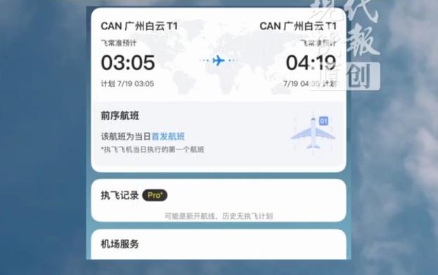 據(jù)了解,7月18日晚,因?yàn)楸┯,白云機(jī)場(chǎng)發(fā)生大面積延誤,一直到7月19日凌晨四點(diǎn)多才解除航班大面積延誤預(yù)警。這也是為什么這個(gè)試飛從原計(jì)劃三點(diǎn)多起飛,推遲到實(shí)際五點(diǎn)多起飛。一般航班試飛,會(huì)選擇其他航班少的時(shí)間段。