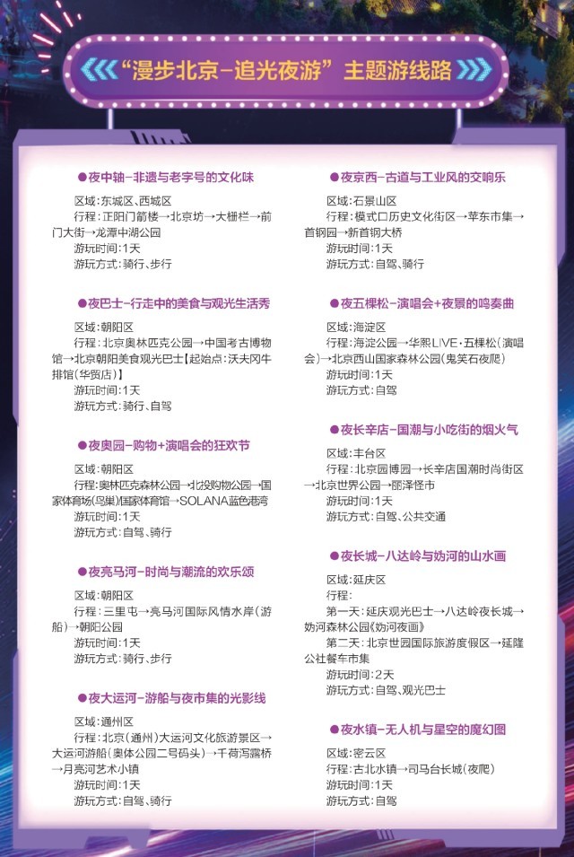 政府引導(dǎo),市場創(chuàng)新,多業(yè)互促,區(qū)域聯(lián)動,重塑著北京文旅版圖,夜間文旅也在通過一些創(chuàng)新模式,延長消費時間,拓展消費空間。