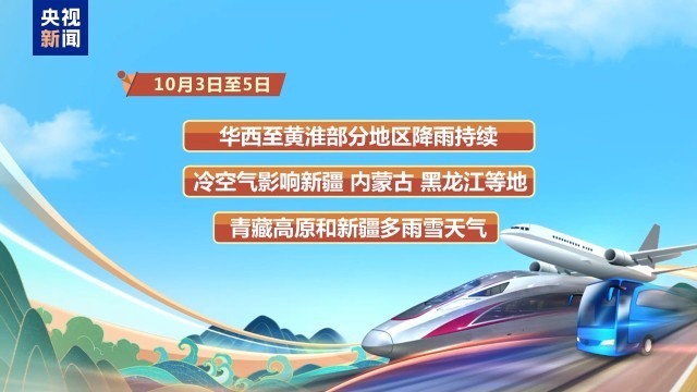 據(jù)中央氣象臺發(fā)布的消息,10月3日至5日,華西至黃淮一帶部分地區(qū)降雨持續(xù),冷空氣影響我國新疆、內(nèi)蒙古、黑龍江等地,青藏高原和新疆多雨雪天氣。公安部交通管理局提醒廣大駕駛?cè)撕统鲂腥罕姡⒁怅P(guān)注沿途及目的地氣象部門預(yù)報預(yù)警信息。