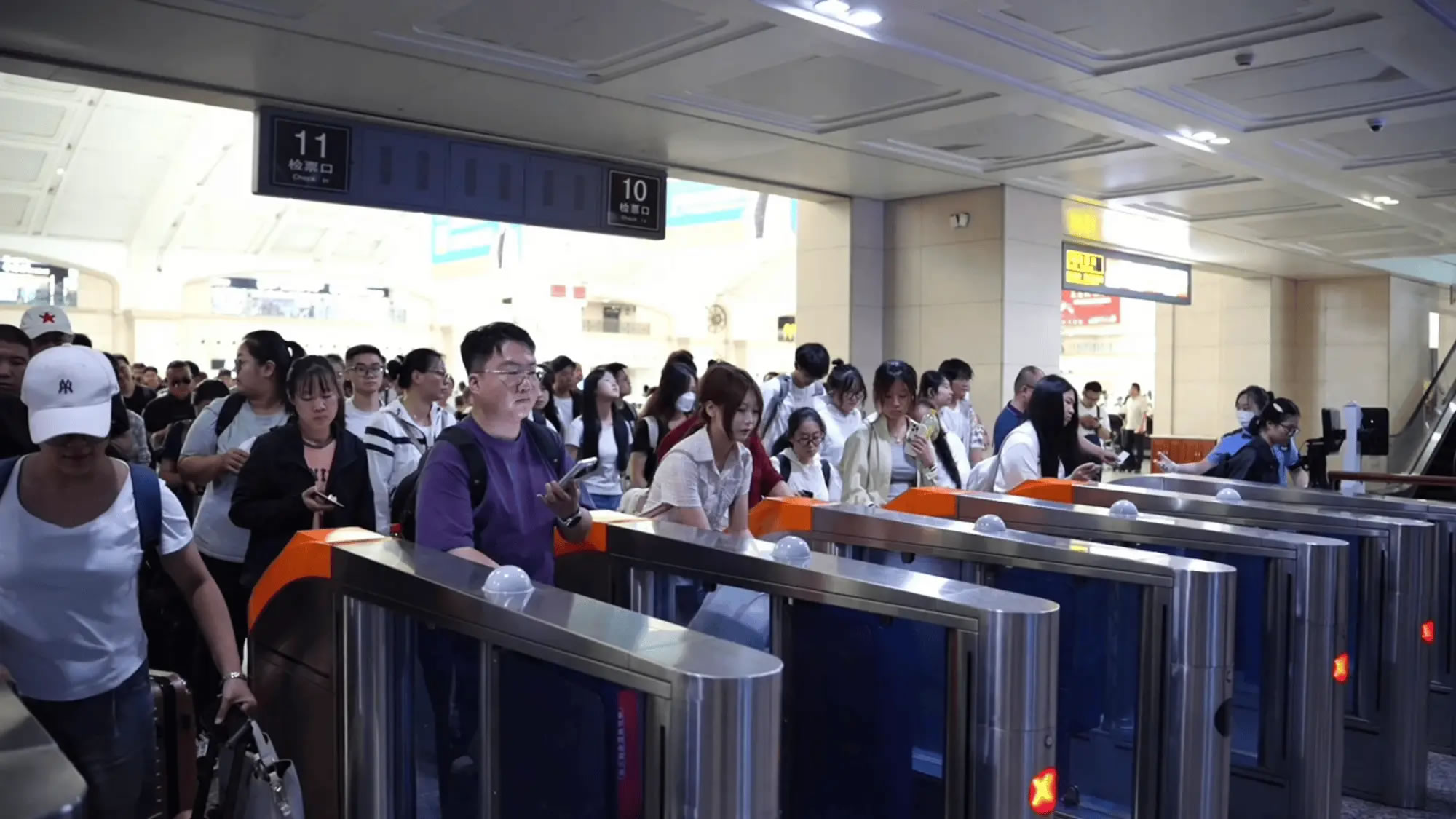旅客有序驗票(羅文 攝)
