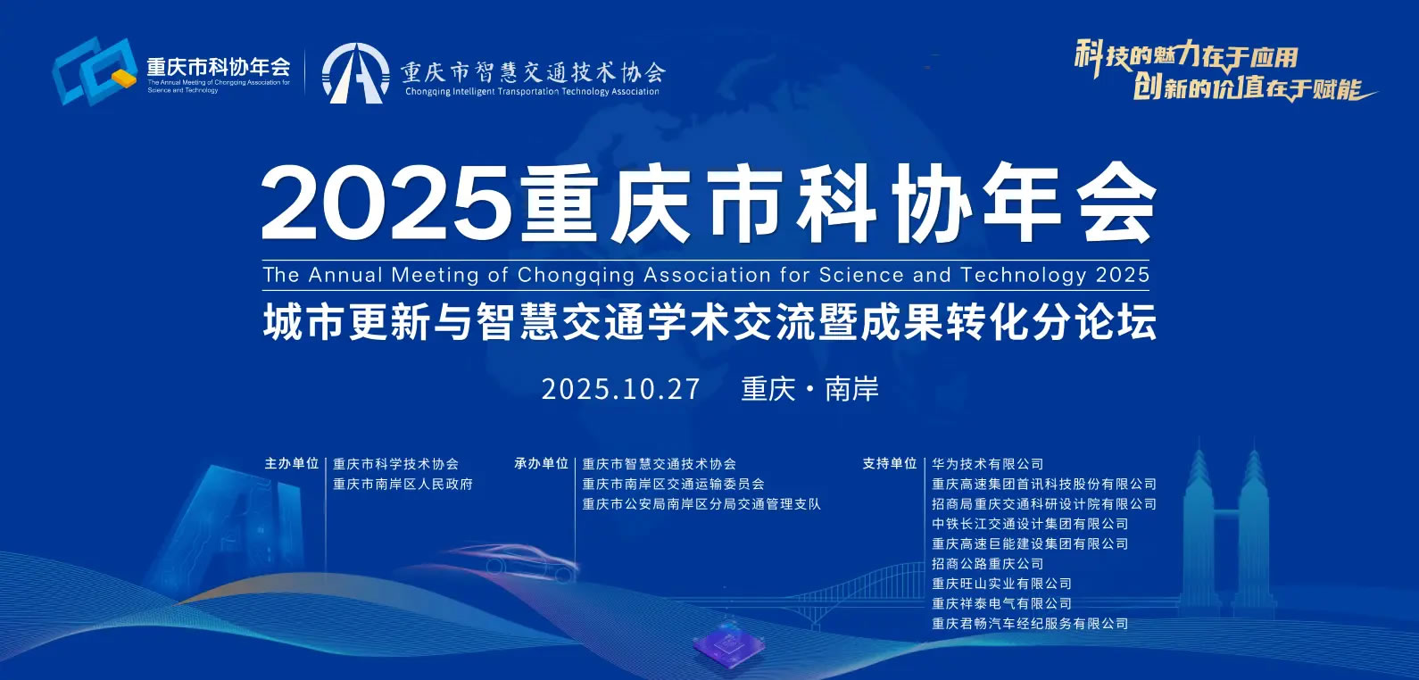 10月27日,2025重慶市科協(xié)年會(huì)即將開幕。作為年會(huì)重要組成部分,“城市更新與智慧交通學(xué)術(shù)交流暨成果轉(zhuǎn)化分論壇”將于當(dāng)天下午舉行,旨在匯聚政、產(chǎn)、學(xué)、研各方力量,共同探討人工智能等前沿科技如何賦能重慶城市交通治理與更新。