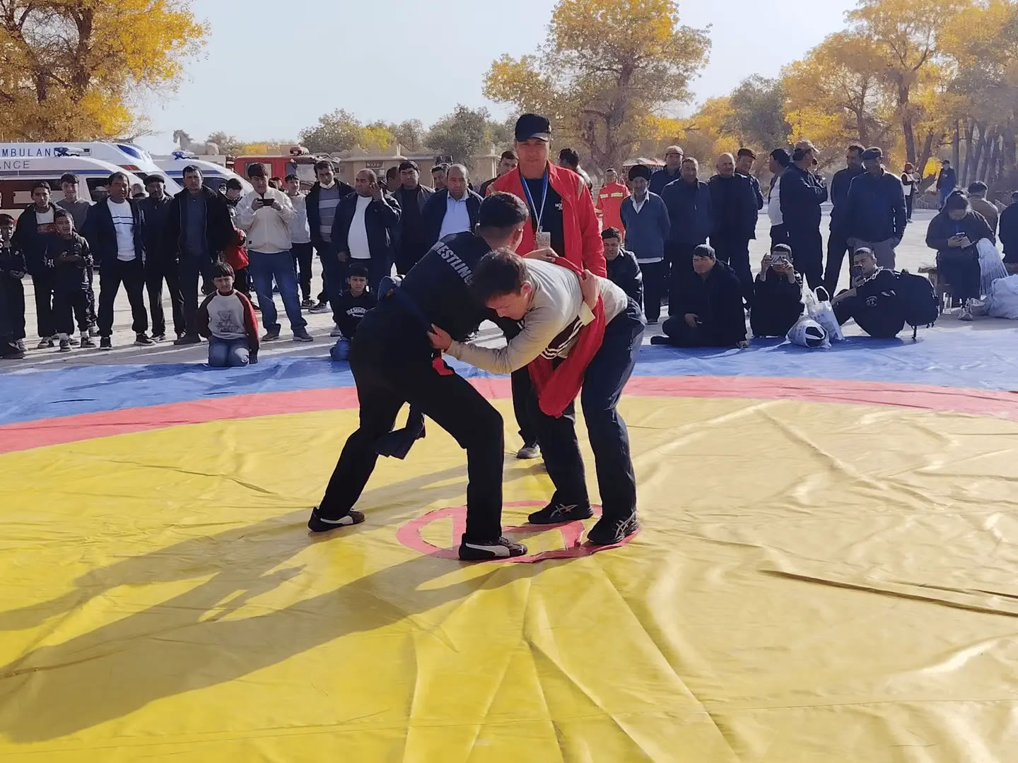 活動當天,且力西比賽現(xiàn)場熱鬧非凡,眾多體育愛好者與游客紛紛圍攏,目光緊盯著賽場。隨著裁判一聲哨響,摔跤手們迅速進入狀態(tài),或蹲下身子穩(wěn)步試探,或主動出擊鎖住對方肩膀。抱腰、絆腿、過肩摔……一系列技巧動作如行云流水,剛勁有力又不失靈活。每當有精彩對決上演,場邊便爆發(fā)出陣陣喝彩與加油聲,不少觀眾舉起手機,記錄下這難忘的瞬間。