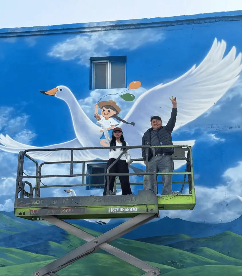 10月25日,新疆庫(kù)爾勒市杜鵑河畔天鵝驛站旁,一幅高15米、寬13米的天鵝主題彩繪正式完成創(chuàng)作。墻繪師雷雪帶領(lǐng)團(tuán)隊(duì)耗時(shí)十幾天匠心打磨,將藍(lán)天白云、河流高山與靈動(dòng)天鵝的景致定格在墻體之上,為這座城市的“生態(tài)名片”再添藝術(shù)亮色。