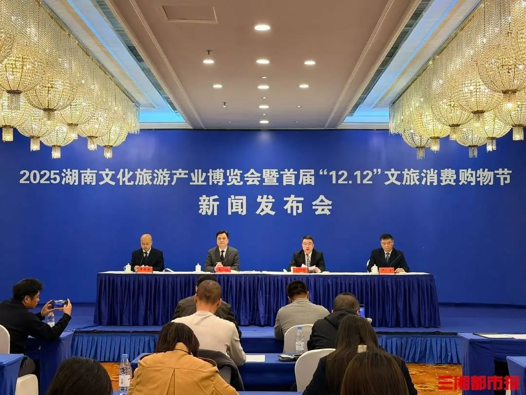 2025湖南文化旅游產(chǎn)業(yè)博覽會暨首屆“12·12”文旅消費購物節(jié)新聞發(fā)布會現(xiàn)場。曾冠霖 攝