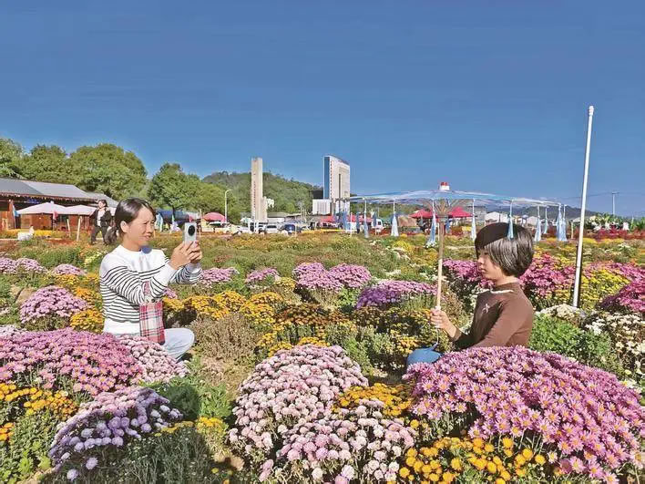 初冬暖陽下,沙縣區(qū)中國菊花種質(zhì)資源保存中心南方分中心基地內(nèi)繁花似錦。30多個(gè)菊花品種次第綻放,切花菊、地被菊、食用菊等繽紛鋪展,10余畝菊田進(jìn)入最佳觀賞期,吸引眾多市民前來賞菊。