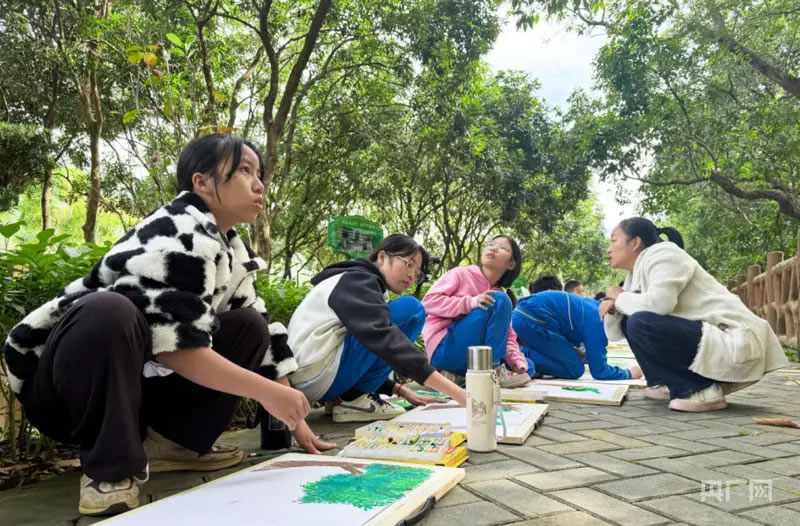 學生在肇慶龍溪棧道進行創(chuàng)作寫生(央廣網記者 官文清 攝)