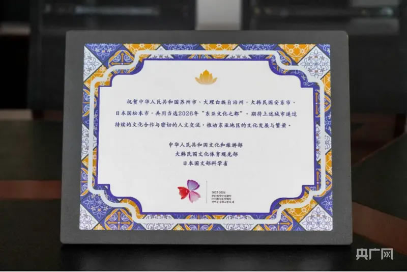 央廣網(wǎng)大理1月7日消息(記者 魏文青)近日,2026年“東亞文化之都”評(píng)選結(jié)果在北京揭曉,大理白族自治州成功當(dāng)選,成為云南省首個(gè)獲此殊榮的城市,也為云南參與東亞城市文化交流打開(kāi)新的門(mén)戶(hù)。