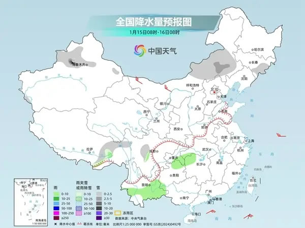 后天,內(nèi)蒙古中部、吉林東部、新疆沿天山地區(qū)和伊犁河谷、西藏東北部、川西高原東部等地部分地區(qū)有小到中雪或雨夾雪,其中,新疆沿天山西部等地部分地區(qū)有大雪。西藏東南部、湖北西南部、湖南西北部、重慶東南部、貴州東北部、云南中南部、廣西西部等地部分地區(qū)有小雨。
