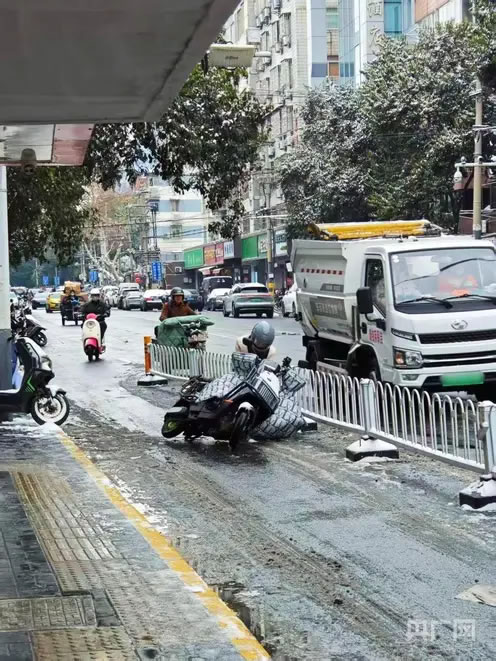 雨雪天市民騎車(chē)摔倒(央廣網(wǎng)記者 王錫斐 攝)