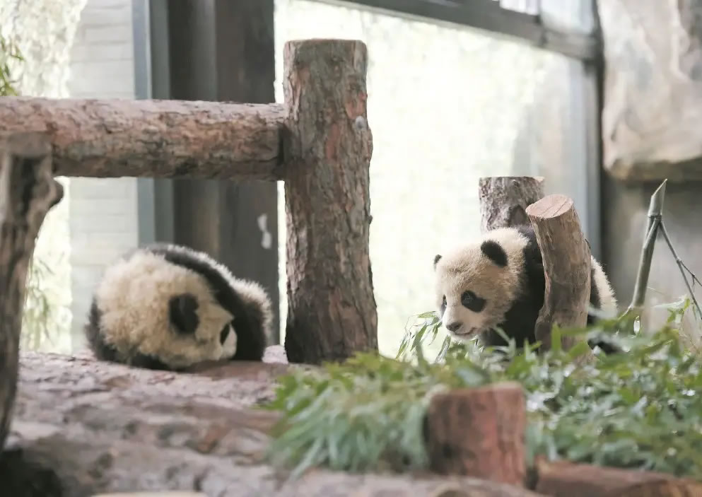 據(jù)大熊貓保育員介紹,這對龍鳳胎出生于去年8月22日,是“芊金”在滬首次產(chǎn)崽。如今雙寶即將滿半歲,體重均已突破10千克,各項生長指標(biāo)良好,體格健壯、性格活潑,已掌握獨立攀爬、奔跑、飲用盆盆奶等技能。