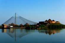 寧夏濕地博物館主要以葦、鳥、水、沙為設計元素,采用“沙丘”主造型,結合聲、光、電、像等科技技術,將濕地知識、濕地生物、濕地文化、濕地與人類的關系、科普科研、收藏展覽、演藝娛樂和旅游服務有機結合的展館。