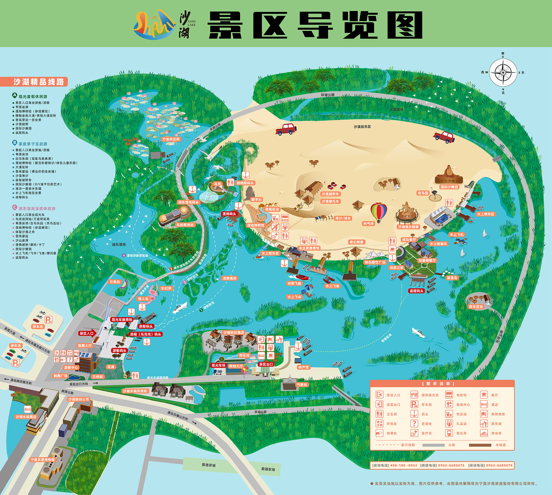 寧夏沙湖生態(tài)旅游區(qū)是一處融合江南水鄉(xiāng)之靈秀與塞北大漠之雄渾為一體的“絲路驛站”上的旅游明珠。主要景點有沙湖國際沙雕園、鳥島(百鳥樂園)、湖東濕地(鳥類觀測站)、新門區(qū)廣場、沙湖題字石等多余處景觀組成 。