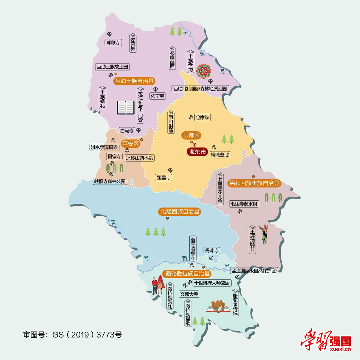 海東市轄2個區(qū)、4個自治縣: