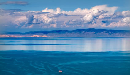 青海省青海湖景區(qū),位于青藏高原的東北部、西寧市西北部、剛察縣南部,距西寧市136公里。青海湖古稱“西!,又稱“仙!薄ⅰ磅r水!薄ⅰ氨昂糖己!,是中國(guó)最大的內(nèi)陸湖、最大的咸水湖。湖面海拔3196米,湖岸線長(zhǎng)360公里,面積4583平方公里,湖水冰冷且鹽份很高。湖中有海心山,四周高山環(huán)繞:北面是大通山,東面為日月山,南面是青海南山,西面為橡皮山。湖區(qū)盛夏時(shí)節(jié)平均氣溫僅15℃,為天然避暑勝地。
