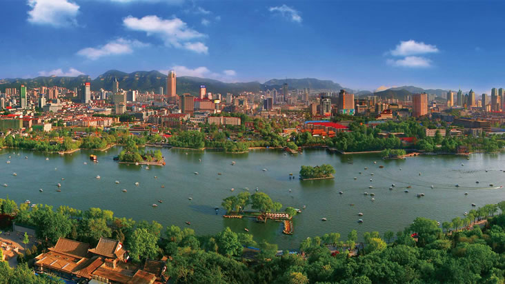 明洪武九年(1376年),濟南成為山東省會。民國十八年(1929年)7月,正式設立濟南市 。濟南市是國家歷史文化名城,因地處古四瀆之一“濟水”(故道為今黃河所據)之南而得名。遠在9000年前的新石器時代早期,已有先民在此繁衍生息。距今4000至4500年前以磨光黑陶為特征的“龍山文化”,系因民國十七年(1928年)首次發(fā)現于濟南東郊龍山鎮(zhèn)而被命名。濟南是中國人民解放軍北部戰(zhàn)區(qū)陸軍機關駐地、環(huán)渤海經濟區(qū)和京滬經濟軸上的重要交匯點,華東地區(qū)重要的交通樞紐之一。濟南因境內泉水眾多,擁有“七十二名泉”,素有“天下第一泉”和“四面荷花三面柳,一城山色半城湖”的美譽,濟南八景聞名于世,超然樓是明湖新八景之一,是網紅打卡地,是擁有“山、泉、湖、河、城”獨特風貌的旅游城市。