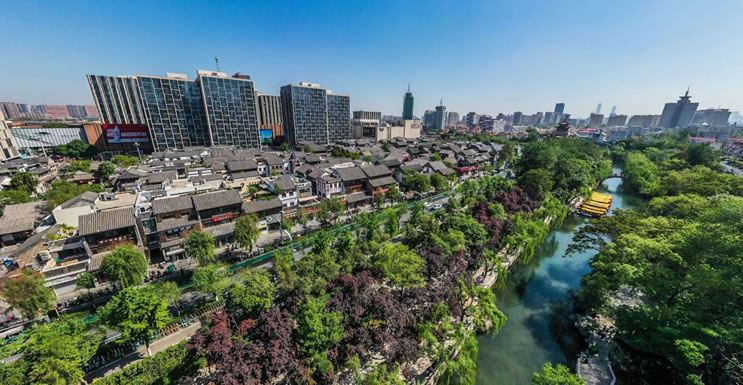 濟南老城的泉水分布最為密集,十大泉群中,僅有老城就占有4個,基本上是現今游船環(huán)城一圈的區(qū)域:從黑虎泉出發(fā),經泉城廣場—西門—五龍?zhí)丁竺骱珗@北側—老東門—青龍橋,密布著大大小小100多處天然甘泉,匯流成的護城河流淌到大明湖,與周圍的千佛山、鵲山、華山等構成了獨特的風光,也成為少有的集“山、泉、湖、河、城”于一體的城市,自古就有“家家泉水,戶戶垂柳”、“四面荷花三面柳,一城山色半城湖”的美譽。