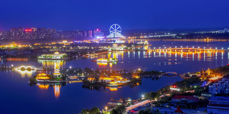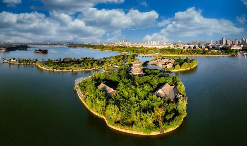國家4A級旅游區(qū)、山東省重點服務業(yè)園區(qū)、山東省生態(tài)漁業(yè)示范園、國家垂釣基地,也是“江北水城·運河古都——生態(tài)聊城”城市品牌的核心區(qū)域。位于聊城市中心城區(qū),由10個湖區(qū)和20塊水面組成,總面積6.3平方千米,湖岸線長達16千米,有“南有西子,北有東昌”之美譽,是中國江北地區(qū)罕見的大型城內(nèi)湖泊。東昌湖湖始于北宋熙寧三年(1070年),水深平均達3米,最深處5米。水質(zhì)清澈,景色宜人,適宜水上游樂項目的開發(fā)與建設。
