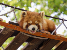 小熊貓展區(qū)設(shè)置有供小熊貓攀爬的假樹、假山、繩梯、秋千等設(shè)施,更好的展現(xiàn)了小熊貓的日常行為,提高游客的參觀效果。