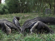 大食蟻獸展區(qū)位于鱷魚島的北面緊鄰飛熊山莊,大食蟻獸是生活在南美洲的一種奇特動物,它們的長相非常獨(dú)特,有著尖尖的腦袋和一把“大掃帚”尾巴。大食蟻獸室內(nèi)展廳設(shè)計有地暖和空調(diào),一到冬天就會開啟,將室內(nèi)溫度維持在15攝氏度左右,為保證空氣流通,白天亦會開窗通風(fēng)。其次,在大食蟻獸睡覺區(qū)域鋪墊了木板,能減少熱量流失,它們很喜歡在木板上盤成圈睡覺。冬天的時候,大食蟻獸的食物會提前預(yù)熱下,例如牛奶提前泡暖,酸奶放置到常溫再使用。