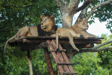 國禮非洲獅展區(qū)模仿非洲的自然環(huán)境,種滿了面包樹等植物。由津巴布韋人民贈送給中國人民一對非洲獅居住在此,中方將它們命名為“津津”和“菲菲”,寓意中津和中非友好。