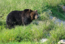 熊區(qū)是車入?yún)^(qū)的一部分。熊區(qū)模擬自然生態(tài)環(huán)境建設(shè),設(shè)置巖石山體、池塘溝渠;種植了喬木和灌木,給棕熊和黑熊更多的自由活動的空間。