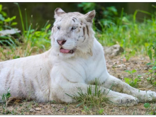 白虎領(lǐng)地展區(qū)位于車入?yún)^(qū),展區(qū)模擬白虎原生態(tài)的生存環(huán)境。白虎是白化的孟加拉虎,眼睛通常是藍(lán)色或琥珀色,鼻子粉紅色,皮毛或奶油色,條紋有黑色、灰色或巧克力色。