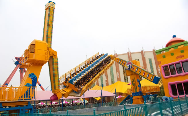 在優(yōu)美、輕快的旋律中,碩大的轉(zhuǎn)盤(pán)和轉(zhuǎn)臺(tái)錯(cuò)向旋轉(zhuǎn)、搖擺,隨著轉(zhuǎn)盤(pán)的搖擺,塔身徐徐上升。此時(shí),穩(wěn)坐飛椅的游客在離心力的作用下,上下飛旋,時(shí)而像在藍(lán)天翱翔,時(shí)而像在海上沖浪,能感受到騰云駕霧的快感。想體驗(yàn)兒時(shí)蕩秋千的感覺(jué)嗎,想體驗(yàn)在空中展翅飛翔的暢快嗎,那就來(lái)到高空飛翔盡情的放聲尖叫吧……