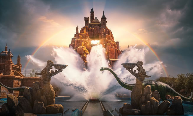 逃出恐龍島是以吳哥窟為主要建筑風(fēng)格的大型室內(nèi)漂流歷險(xiǎn)主題項(xiàng)目,游客將乘坐小車(chē)進(jìn)入危險(xiǎn)的侏羅紀(jì)時(shí)代,在茂密的叢林里展開(kāi)一場(chǎng)驚心動(dòng)魄的冒險(xiǎn)。巨型恐龍的隆隆腳步震動(dòng)著大地、頭頂上盤(pán)旋著空中獵手、巨石突然從眼前滾落,緊張和恐怖彌漫四周。隨后游船從幾十米高的懸崖瀑布上急速下墜,讓游客在驚叫聲中經(jīng)歷一場(chǎng)永生難忘的恐龍島冒險(xiǎn)之旅。