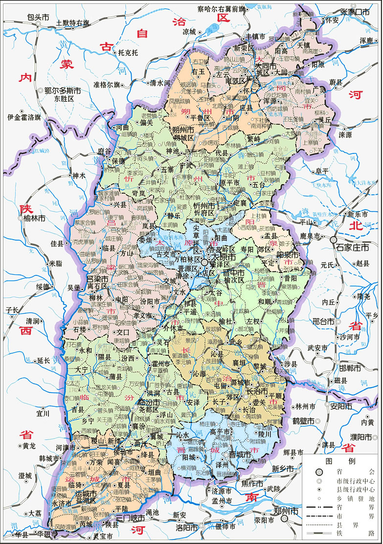 山西地處華北地區(qū)西部,黃土高原東翼,境界輪廓略呈現由東北斜向西南的平行四邊形。東有巍巍太行山作天然屏障,與河北省為鄰,西、南皆以濤濤黃河為塹,與陜西省河南省相望,北跨綿綿內長城,與內蒙古自治區(qū)毗連。