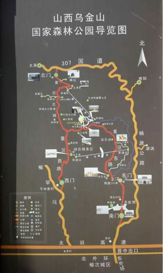 烏金山位于山西省晉中市榆次區(qū)境內,自古就是避暑勝地。北部與太原市相連,地勢北高南低,群山疊嶂,奇峰毓秀,海拔1200--1489米,有天然森林三萬畝,松柏密集,植被隆厚,白皮松婷婷玉立,側柏風姿卓然,油松蒼勁挺拔,冠蓋奇特。總面積5.5萬畝,森林面積3.1萬畝,森林覆蓋率達80%以上。境內有佛教建筑水晶院、正壽寺、華嚴寺、和合寺、大佛臺、西晉王廟遺址,又有道教建筑太清宮、呂洞賓詞碑、玉皇閣、龍王廟、五爺廟、九峰塔以及孔祥熙避暑別墅等景點。