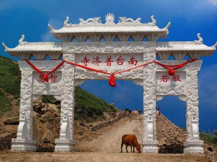 南臺(tái)名錦繡峰,海拔2485米,此峰“頂若覆盂,圓周一里,山峰聳峭,煙光凝翠,細(xì)草雜花,千巒彌布,猶鋪錦然,故以名焉!敝(shī)人元好問(wèn)賦詩(shī)贊曰:“沈沈龍穴貯云煙,百草千花雨露偏。佛土休將人境比,誰(shuí)家隨步得金蓮?”