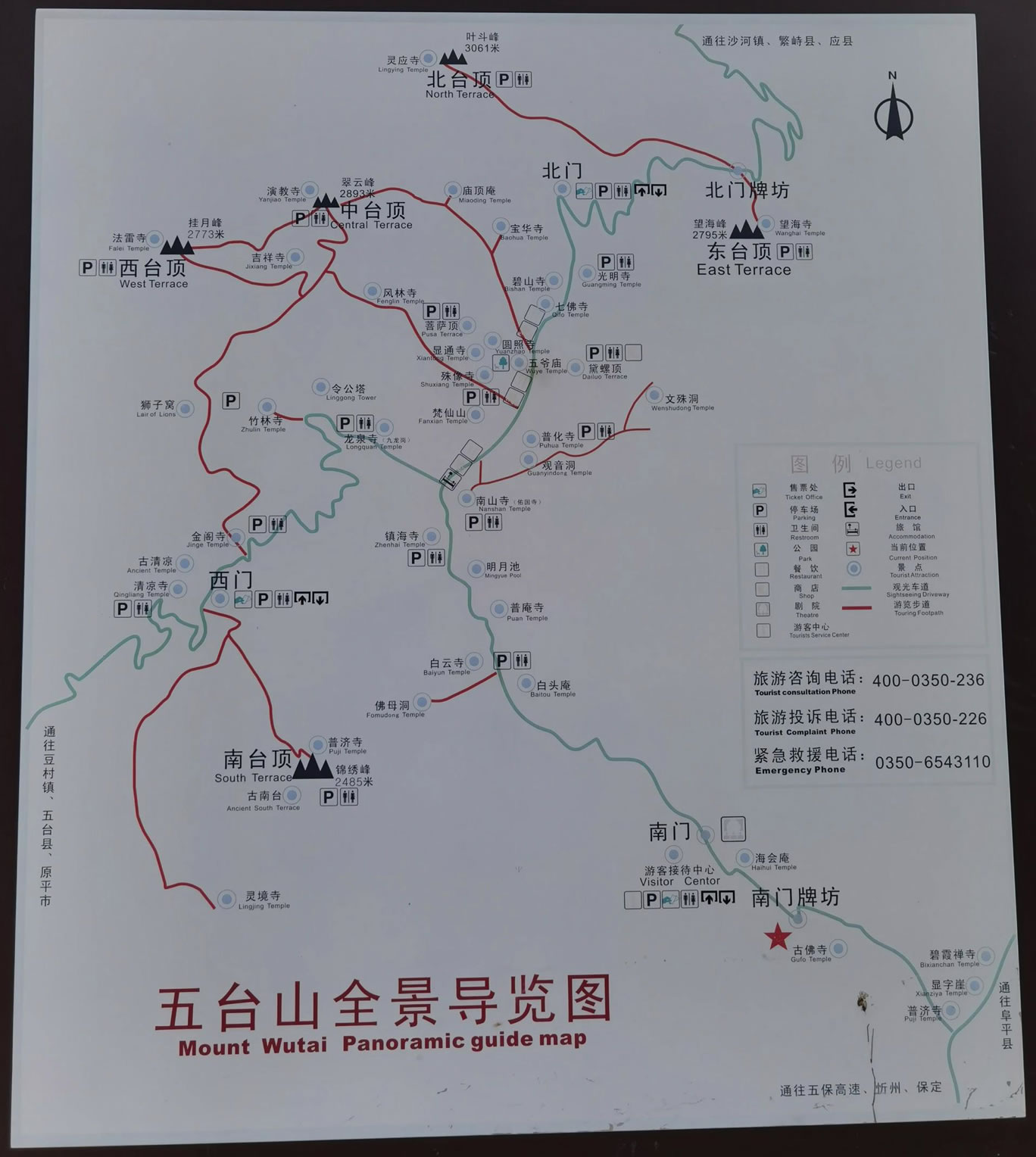 五臺(tái)山,方圓250公里,總面積2837平方公里。以臺(tái)懷鎮(zhèn)為中心,周?chē)倭⒅鴸|、西、南、北、中五個(gè)山峰,高出云表,山頂無(wú)林木,如壘土之臺(tái),稱(chēng)作五臺(tái)。最高點(diǎn)北臺(tái)葉斗峰海拔3058米,被稱(chēng)為“華北屋脊”。