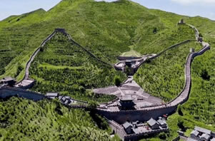 雁門關(guān)長城,為明萬歷三十三年(1605)巡撫都御史李景元在古長城基址上復(fù)筑而成。西起白草口,東至新廣武,高8至10米,上闊4.6米,全長5033米,每120米建敵樓1座。現(xiàn)存完整敵樓有“針扃”、“控隴”、“壯櫓”、“天山”等,此外還置烽火臺(tái)、壕塹,是中國明代長城的代表作。
