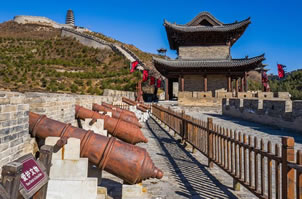 關(guān)城以西的舊關(guān)城俗稱為鐵里門。兩關(guān)之間用石砌長城相連,并建造了敵樓、烽火臺(tái)等,形成一組完整的防御體系。在舊關(guān)城附近有一段明代建造的白草口長城,是中國目前保存最完好的長城段之一,該段長城全長5033米,墻高6-8米,底寬5米,頂寬3米。每隔120米左右,便建烽火臺(tái)和敵樓各一座,在險(xiǎn)要的地段,還設(shè)置了堡寨、壕溝和暗門等。它的東西兩端向北延伸后,最終與外長城相連。