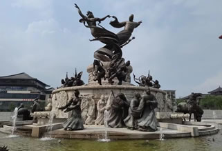 〔舞馬臺〕舞馬之所,舞馬是唐玄宗獨出心裁的大發(fā)明!睹骰孰s錄》稱:“玄宗常教舞馬四百蹄,各為左右,分為部目,為某家寵,某家驕。時塞外亦有善馬來貢者,上俾之教司,無不曲盡其妙。因命衣以文繡,絡以金銀,飾其鬃鬣,間雜珠玉。奏其曲謂‘傾杯樂’者數(shù)十回。其馬奮首鼓尾,縱橫應節(jié)。又施三重板床,乘馬其上,旋轉(zhuǎn)如飛,……每千秋節(jié)(玄宗生日)命舞于勤政樓下!薄督蜿栭T》詩注:“其舞馬,安祿山亦將數(shù)匹以歸而私習之。其后,田承嗣代安有存者,一旦于廄上聞鼓聲,頓挫起舞,廄人惡之,舉篲以擊之,其馬尚為怒未妍妙,因更奮擊,宛轉(zhuǎn)曲盡其態(tài)。廝恐以告,承嗣以為妖,遂戮之,而舞馬自此絕焉。”杜甫《斗雞殿》詩“斗雞初賜錦,舞馬既登床”即言此。