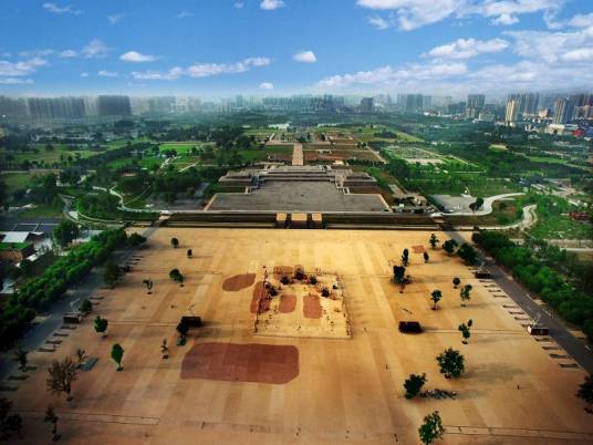 唐朝定都長安后,改隋大興城為長安城,并進行了增修和擴建。貞觀八年(634年),在原外郭城東北龍首原上營建大明宮。之后又不斷修建城墻、城樓、興慶宮等建筑。宮城完全與今西安市重合,皇宮與今西安市明城墻重合。唐代帝王陵,如昭陵、乾陵等則大部分在今咸陽市境內(nèi)。而在唐代,唐十八陵全部在京兆府的轄縣內(nèi),乾陵是京兆府奉天縣。自隋朝開皇二年(582年)開始,至唐朝永徽五年(654年)基本就緒,歷時72年。城市面積84.1平方千米,布局規(guī)劃整齊,東西嚴格對稱,分宮城、皇城和外廓城三大部分。長安城市結(jié)構(gòu)布局充分體現(xiàn)了當時封建社會的宏大氣魄,在中國建筑史、城市史上具有劃時代影響。