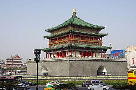 鐘鼓樓為鐘樓和鼓樓的合稱,均為中國古代的報時建筑。鐘樓是一座重檐三滴水式四角攢尖頂?shù)拈w樓式建筑,鼓樓為古代城市中設(shè)置大鼓的樓。用以擊鼓報警,或按時敲鼓報告時辰。鐘鼓樓合理的建筑結(jié)構(gòu)、華麗的建筑色彩、典雅的裝飾構(gòu)件,都具有濃郁、鮮明的民族文化特色,是西安標志性建筑物,先后接待了周恩來、朱德等國家領(lǐng)導(dǎo)人和眾多中外著名人士。