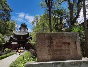 三絕云巖寺:始建于唐,明末焚于兵火,清雍正三年(1725年)重修。云巖寺在唐乾符年間(公元874年)就有東西二院,歷經(jīng)唐、宋、元、明、清毀茸交替,及佛道相爭,形成“東禪林,西道觀”的格局。像云巖寺這樣建于山脊,背負(fù)三座主峰,坐北朝南而又是中軸線對稱布局的古寺院建筑群,在全國是罕見的。寺前山門外有李白贊圌山石碑一通,碑文“樵夫與耕者,出入畫屏中”,是國民黨元老于右任手書鐫刻而成。