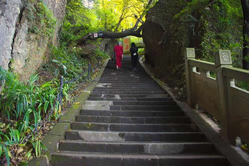 從竇圌山牌坊開始,是一條通往山頂?shù)牟叫惺荨ㄌ斓。通天道長513米,806級石梯,垂直高差63米,俊俏瀟灑,直指云端。