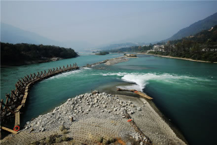 都江堰是當(dāng)今世界年代久遠(yuǎn)、唯一留存、以無(wú)壩引水為特征的宏大水利工程。它充分利用當(dāng)?shù)匚鞅备、東南低的地理?xiàng)l件,根據(jù)江河出山口處特殊的地形、水脈、水勢(shì),乘勢(shì)利導(dǎo),無(wú)壩引水,自流灌溉,使堤防、分水、泄洪、排沙、控流相互依存,共為體系,保證了防洪、灌溉、水運(yùn)和社會(huì)用水綜合效益的充分發(fā)揮。它最偉大之處是建堰2250多年來(lái)經(jīng)久不衰,而且發(fā)揮著愈來(lái)愈大的效益。
