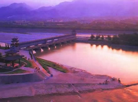 都江堰,位于四川省成都市都江堰市城西,坐落在成都平原西部的岷江上,是由渠首樞紐(魚(yú)嘴、飛沙堰、寶瓶口)、灌區(qū)各級(jí)引水渠道,各類(lèi)工程建筑物和大中小型水庫(kù)和塘堰等所構(gòu)成的一個(gè)龐大的工程系統(tǒng),渠首占地面積200余畝。 它擔(dān)負(fù)著四川盆地中西部地區(qū)7市(地)40縣(市、區(qū))1130萬(wàn)余畝農(nóng)田的灌溉、成都市多家重點(diǎn)企業(yè)和城市生活供水,以及防洪、發(fā)電、漂水、水產(chǎn)、養(yǎng)殖、林果、旅游、環(huán)保等多項(xiàng)目標(biāo)綜合服務(wù),是四川省國(guó)民經(jīng)濟(jì)發(fā)展不可替代的水利基礎(chǔ)設(shè)施。