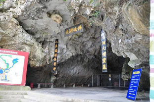 佛爺洞位于李白故里——四川省綿陽(yáng)江油市城西北十四公里處,是神密的川西北最大的喀斯特溶洞。此處上接匡山(又名戴天山);下連李白讀書臺(tái);東臨觀霧、團(tuán)嶺;西依瑩華、乾元,它是通往九寨風(fēng)景區(qū)的必經(jīng)之地。洞四周山環(huán)水繞,古木蒼翠,風(fēng)光奇絕。民國(guó)二十三年,人們?cè)谕ㄌ烨搴舆叞l(fā)現(xiàn)了一蹲三米多高的石刻如來(lái)佛像,故此洞名曰佛爺洞。
