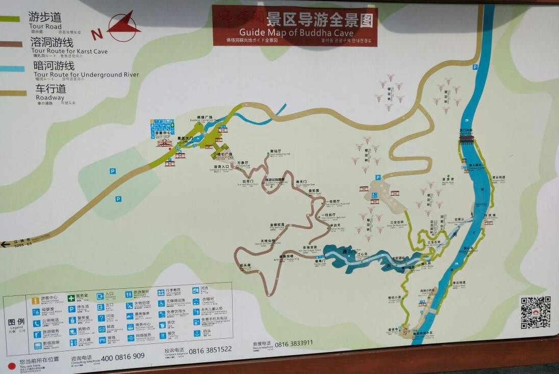 整個(gè)旅游區(qū)域以佛爺洞為主,其余的七仙洞、牛角洞、西方境等正逐步開發(fā)。佛爺洞由三廳、兩廊、一河構(gòu)成,全長(zhǎng)三千余米,洞內(nèi)景點(diǎn)六十多個(gè)。全洞從上至下共分三層,第一層從“佛手迎客”至“南天門”。此層涼風(fēng)習(xí)習(xí),沁人心脾,滌蕩塵心。步入此層,迎面便是一只巨大佛手從洞頂伸出,歡迎你的到來(lái)。接著便是“三心堂”,所為三心及天心、地心、人心。還有“圣燈”、“金猴撈月”、“菩蒂樹”、“鯉躍觀柳”等栩栩如生的景點(diǎn)。行至前方,左有園盤皎陽(yáng),右有彎鉤銀月,名曰“日月門”。過此門沿石階面下,道旁有頭戴銀盔、身披鎧的“巨靈神”把守仙境要道。右方大廳石壁上一條巨蛇從洞內(nèi)伸頭欲奔,一只大龜頭頸長(zhǎng)伸,狀若賽跑,對(duì)面石壁上老壽星美鬢長(zhǎng)飄、笑容可掬觀看比賽,人們稱之為“龜蛇奔天門”。要道左方可觀看到:“雄獅騰空”、“千佛巖”、“達(dá)摩廊壁”、“靈芝山”、“神鷹回首”、“玉杯”、“金山、銀山”、“鋸臺(tái)”、“天橋”等惟妙惟肖的鐘乳石造型,恰似一幅璀燦奪目的藝術(shù)浮雕。