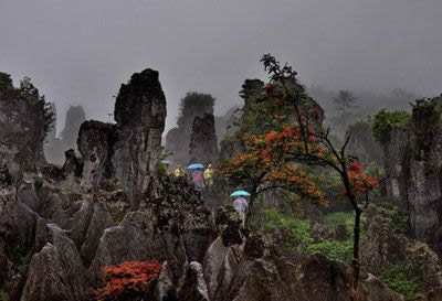 華鎣山的石柱雄壯秀拔,石生樹、樹纏石等自然景觀隨處可見,旅游區(qū)內(nèi)的植被更是枝葉繁茂、郁郁蔥蔥。經(jīng)初步估算旅游區(qū)內(nèi)的植被種類竟達304種之多。珍稀的香果樹、穗花杉等多種國家一、二級的保護植物似珍珠般的散落于旅游區(qū)。山下以松樹、杉樹為主;山上以藤蔓、稀有樹種為主;茂密的白夾竹、茨竹、方竹、灌木、喬木漫山遍野,掩映于奇特的石林之中,植被覆蓋率達95%以上的旅游區(qū)格外耀眼壯觀。而個別的罕見的植物植物學(xué)家們至今難以對它命名,從而更增加華鎣山神秘的色彩。
