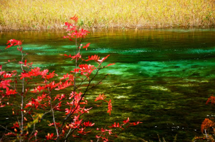 繽紛的落葉在湖光流韻間漂浮,悠遠(yuǎn)的晴空碧凈而湛藍(lán),秋天的九寨溝美得仿佛不真實(shí),無時(shí)無刻不在演繹著赤、橙、黃、綠、青、藍(lán)、紫的夢幻組合,古人說的“造化鐘神秀”,也就不過如此吧。