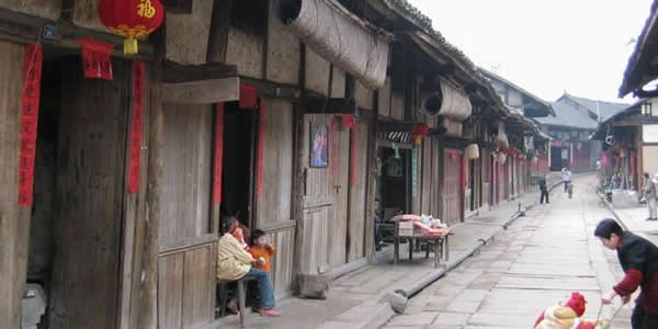 歷史文化 堯壩古鎮(zhèn)歷史悠久,是合江最早的六大古寨和八大古鎮(zhèn)之一。北宋元豐(1078-1085)年間,合江設(shè)置二鄉(xiāng)六寨,堯壩寨為軍事要寨,居六寨之首;南宋嘉定(1208-1224)年間,合江劃分一鄉(xiāng)七里二十都、六寨十九集市,堯壩居白馬里第13都,稱為堯壩集市;至清雍正七年,編為合江西鄉(xiāng)堯壩支;光緒年間(1906)屬西四區(qū)堯壩鄉(xiāng),解放后改為堯壩鎮(zhèn)。堯壩人杰地靈,名人薈萃。在這鐘靈毓秀的土地上,孕育了清嘉慶年間武進士李躍龍、反清斗士任大容、近代革命斗士梁自銘、著名導演凌子風、美學奠基人王朝聞、著名作家李子英、打工文學扛鼎者周崇賢、著名美術(shù)設(shè)計師楊洪烈等一批優(yōu)秀名人。 堯壩古鎮(zhèn)依山傍水,鎮(zhèn)周青山翠疊,河岸綠竹搖曳。鎮(zhèn)內(nèi)古街保留完好,建筑完整,有小青瓦房2000余間。上街房依山而建,高低起伏、錯落有致,下街房寧靜平和,瓦脊連成一線,形成有節(jié)奏、有韻律的民居群落。鎮(zhèn)內(nèi)茶館、酒肆、打鐵鋪、飯館、旅店、打鐵鋪一應(yīng)俱全。堯壩鎮(zhèn)古民居以其宏大的規(guī)模和完好的保護程度,被清華大學古建筑著名教授陳志華稱之為“川南古民居的活化石”。古鎮(zhèn)標志性建筑是大鴻米店,為清嘉慶年間武進士李躍龍所建,著名導演黃健中在此執(zhí)導拍攝了影片《大鴻米店》。 堯壩鎮(zhèn)匯集了川、黔兩省的濃厚歷史文化和古風民俗,是享譽川黔的文化名鎮(zhèn)、影視基地、佛教圣地。鎮(zhèn)上先后拍攝了《狂》、《大鴻米店》、《山風》、《瀘州起義》、《英雄無界》、《功夫驕子》等十多部影片。 堯壩古鎮(zhèn)的景點主要有古街道、古民居群、進士牌坊、東岳廟、大鴻米店、娘親古榕、九龍聚寶山、興順號、添壽堂、神仙洞、茶鹽古道豆花館、龍眼井、喻嘴河、渣口石水庫等。古鎮(zhèn)還有特色油紙傘、土布、竹編等工藝品出售。鎮(zhèn)上還有黃粑、豬兒粑、水豆花、蕨苔、天堂筍、竹筒飯等特色小吃。 名勝古跡 進士牌坊座落于古街最南端,為堯壩古鎮(zhèn)清代建筑物。清嘉慶十五年(1810年),皇帝嘉獎庚午科武進士李躍龍功績而御立。牌坊雕刻精美,匠心獨運,坐北向南,石結(jié)構(gòu),三重檐四柱三間,斗拱歇山式建筑,通高7.8米,面闊8.8米。牌坊上匾額、題對保存完好,一、二重檐上題有“營守府”“賜進士第”字樣。 堯壩古街道始建于明清時代,為南北走向,長1000米,寬5米。街面彎曲呈S形,采用山區(qū)青石板和長條石鑲嵌而成,跌宕起伏,無梯步,能通行車輛。北街是由新房子周其賓為代表的周氏家庭修建,南街是由武進士李躍龍為代表的李氏家族修建,素有周半場、李半場之說。街道兩旁有小青瓦房屋2000余間。上街房依山而建,高低起伏、錯落有致,下街房寧靜平和,瓦脊成一線連貫,形成有節(jié)奏、有韻律的民居群落。家家有巷道和天井,戶戶有木樓,房屋進深一般為四至六間屋,房后有小路與水井相連。墻壁為夾竹壁、古樸的木板壁或厚實的大方磚壁。有的房屋為了防火,戶與戶間還建有風火墻。門多數(shù)為木質(zhì)雙扇,大門兩側(cè)是裝卸方便的板門,也有置木榫逗格子窗,繁復而新奇的圖案,或雕飾靈動的吉祥靈瑞于圖中,隨處可見石雕、石獅等。古民居群中,武進士李躍龍公館、紳士周其賓公館、茶館、染房、酒肆、客棧、戲樓,石雕、木雕、窗欞、亭臺等無不古風遺存。雖歷經(jīng)幾百年風雨,仍古色古香,以其宏大的規(guī)模和完好的保護程度,被眾多專家所關(guān)注。清華大學著名古建筑教授陳志華稱之為“川南古民居的活化石”,著名經(jīng)濟學家厲以寧教授贊揚古鎮(zhèn)是:“淳淳民風依舊,多情千載悠悠”。 凌子風,誕生于1917年,祖籍堯壩陳墻上。祖父在清光緒時做過管錢糧的京官,父親凌望超任北洋工業(yè)學堂實驗工廠廠長,其姐凌眉琳、姐夫李苦禪都是齊白石的高徒。凌子風受姐影響,報考北平美術(shù)?茖W校。在校三年間,舉辦過個人畫展。1934年,參加共產(chǎn)黨外圍組織“中國美術(shù)大聯(lián)盟”。1937年到延安后,參加西北戰(zhàn)場服務(wù)團,任編導委員長。1943年任魯迅藝術(shù)學院教授。1948年加入中國共產(chǎn)黨。1949年新中國成立后,回東北電影制片廠指導新中國第一部故事片《中華兒女》的拍攝,在錄音棚中曾十天十夜不休息,被香港同仁譽為“拼命三郎”。其作品有《中華兒女》、《李四光》、《邊城》、《春桃》等。1990年,凌子風回祖籍堯壩古鎮(zhèn)拍攝了《狂》片。此片是他藝術(shù)生涯中的“壓軸戲”,是他一世人生中的最后杰作。凌子風先后獲得“為爭取和平自由而斗爭獎”,多次獲“百花獎”和“金雞獎”等最佳導演獎。凌子風舊居雖然略顯窄小,但充滿了文氣,特別是屋中一株黃桷樹,郁郁蔥蔥,枝繁葉茂,特具凌老風骨。這是凌子風早年離家時,在盆子里栽種的,原無人照料,卻生命頑強,竟把盆子脹破,根須傳入地中,順石壁攀援,終成大樹。老街上的人說,這樹樹茂根深,凌家必出大人物呢!說歸說,但凌子風坎坷的人生道路和他對電影藝術(shù)執(zhí)著的追求,就象這株黃桷樹一樣,百折不回,直指參天。 大鴻米店為清嘉慶年間武進士李躍龍所建,為古鎮(zhèn)形象建筑。米店臨街,偎依在老街中段的小山丘上,坐東向西,占地約800平方米,為江南風格的全木質(zh